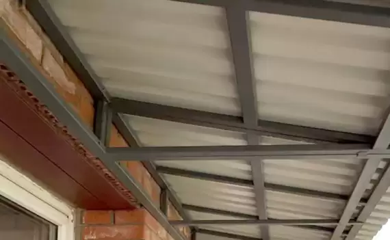 Компания «Балконные Метры» выполнит установку крыши над вашим балконом с кровлей из профнастила. Мы сами изготовим уголки-фермы или опорно-стоечную конструкцию, а также закупим материалы для крыши и произведём монтаж за 1 день.