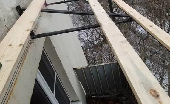 Поверх металлических ферм устанавливается деревянная обрешётка, поверх которой кладётся кровельный материал. Независимую крышу можно установить отдельно от остекления и опор, она является самостоятельным элементом балкона. Поэтому если в планах остекления пока нет, но вы хотите защитить балкон от дождя и снега, то независимый тип крыши — ваш вариант.